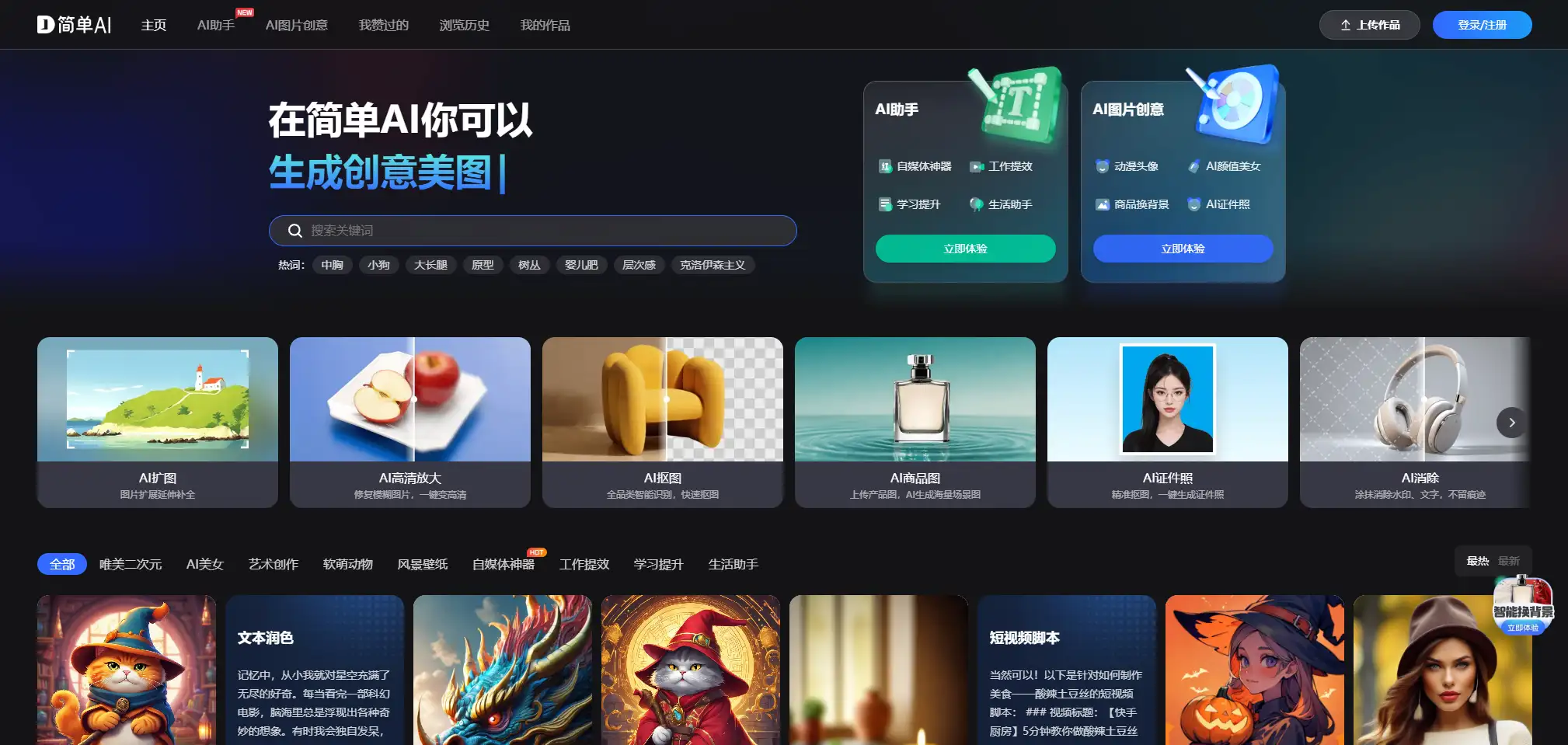 简单AI是搜狐推出的一站式AI社区平台,提供包括AI作图、AI社区、AI素材、AI软件和AI领域知识分享在内的多种服务。该平台旨在为AI爱好者和专业人士提供一个交流、学习和创作的空间,通过AI技术助力用户实现创意和项目开发。